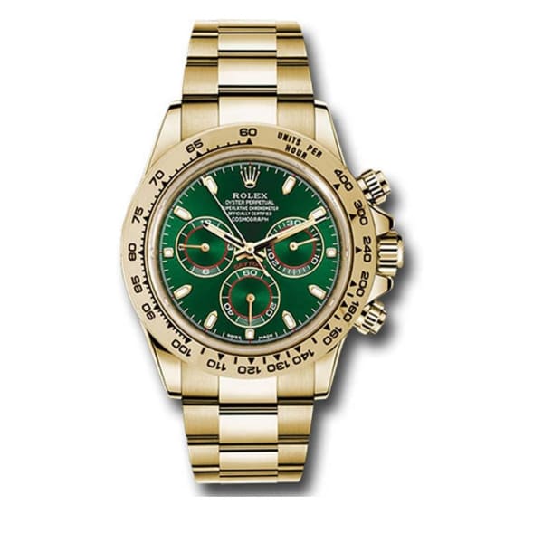 Rolex Cosmograph Daytona 18k Yellow Gold Watch Green Dial Oyster bracelet 116508-0013